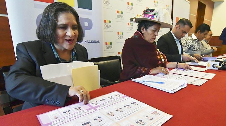 El Tribunal Supremo Electoral (TSE) presentó este miércoles las 10 papeletas que se utilizarán para las elecciones judiciales del domingo 1 de diciembre. Se trata de una papeleta de alcance nacional con candidatos al Tribunal Agroambiental (TA) y al Consejo de la Magistratura (CM), además de otras nueve papeletas departamentales con candidatos al Tribunal Supremo de Justicia (TSJ) y al Tribunal Constitucional Plurinacional (TCP). “Ambos tribunales están conformados por nueve miembros titulares; por lo tanto, el resultado que arroje en cada departamento podrá desembocar en una autoridad electa al TSJ y al TCP”, explicó en conferencia de prensa. Caso TCP En tanto, al menos ocho postulantes al TCP ya pueden considerarse ganadores porque son los únicos candidatos a este órgano jurisdiccional en cuatro departamentos. Aunque reciban una votación mínima, accederán a los cargos y lo único que se definirá en las urnas es la titularidad o suplencia. De acuerdo con la lista de candidatos al TCP aprobada en Santa Cruz, Cochabamba, Potosí y Pando, sólo fueron seleccionados dos postulantes por región, por tanto, serán los únicos en figurar en la franja para la elección de las autoridades de este tribunal. Prohibición Vargas remarcó que las campañas “directas o indirectas” están prohibidas y los candidatos infractores podrían ser inhabilitados. “La norma, la ley es clara: candidato que infrinja el Régimen Electoral, que infrinja las prohibiciones y realice campaña de manera directa e indirecta es pasible a una sanción de inhabilitación (…). Vamos a ser implacables hacia el candidato o candidata que vulnere la normativa electoral”, aseveró Vargas. Se elegirá a nueve magistrados del TCP, nueve del TSJ, cinco magistrados del TA y tres consejeros del CM, de entre 139 candidatos preseleccionados por la Asamblea Legislativa Plurinacional (ALP). El vocal del TSE Tahuichi Tahuichi Quispe explicó que cada elector recibirá dos papeletas, una nacional y otra departamental, y debe “emitir cinco veces su voto”. “El primer voto será “para el TC; el segundo, para el CM; el tercer voto, para candidatas mujeres del TSJ; el cuarto voto, para candidatos varones del TSJ, y el quinto voto para el TCP”, detalló Tahuichi.