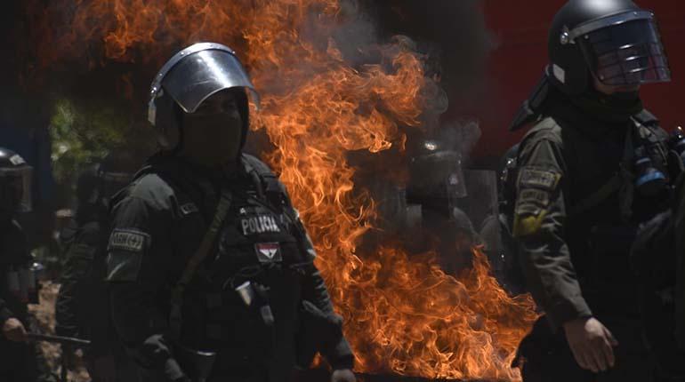La población de Pirque-Parotani está a 39 kilómetros de la ciudad. Los bloqueadores se resisten a dejar del lugar y se enfrentan a los policías con dinamitas y piedras. Además, queman llantas y se refugian en los cerros.