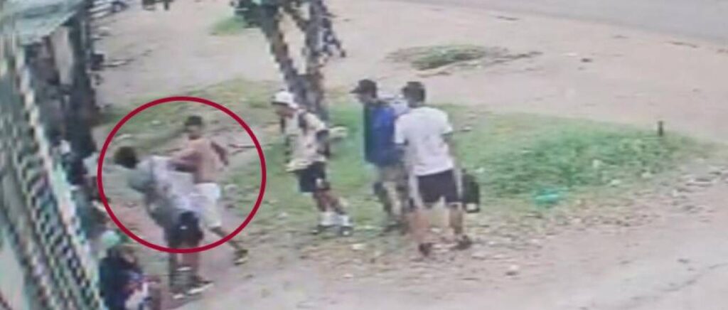 En el video se muestra como el adulto se acerca al grupo de jóvenes, cruza algunas palabras y de un momento a otro golpea a unos de ellos.